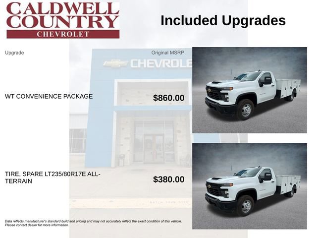 Summit White 2024 Chevrolet Silverado 3500HD Work Truck Fleet RWD 10-Speed Automatic 6.6L V8 10-Speed Automatic, Jet Black Vinyl. Price includes $18,680 in dealer added accessories.