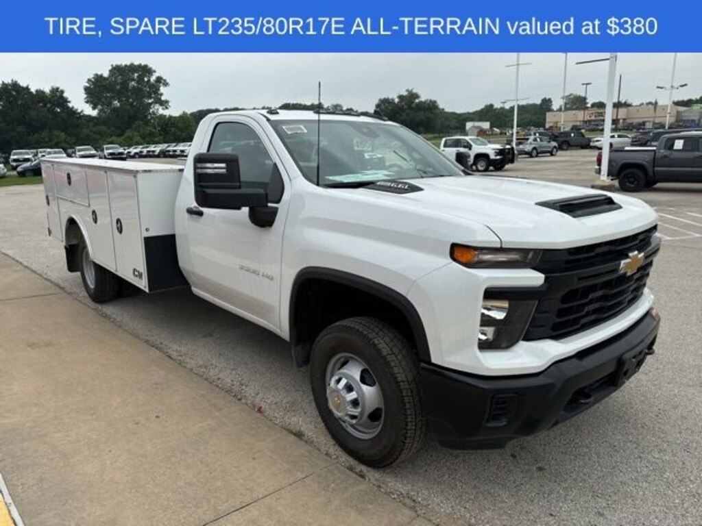 Summit White 2024 Chevrolet Silverado 3500HD Work Truck Fleet RWD 10-Speed Automatic 6.6L V8 10-Speed Automatic, Jet Black Vinyl. Price includes $18,680 in dealer added accessories.