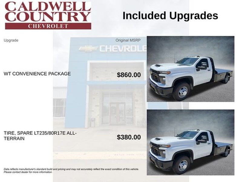 Summit White 2024 Chevrolet Silverado 3500HD Work Truck Fleet RWD 10-Speed Automatic Duramax 6.6L V8 Turbodiesel 10-Speed Automatic, Jet Black Vinyl. Price includes $12,285 in dealer added accessories.