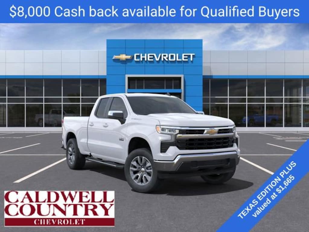 Summit White 2025 Chevrolet Silverado 1500 LT Texas Edition RWD 8-Speed Automatic 2.7L I4 Turbocharged DOHC 16V LEV3-SULEV30 310hp 8-Speed Automatic, Black Cloth. Price includes the following incentives, see dealer for details. : $1000 - Chevrolet Select Market Bonus Cash. Exp. 12/01/2025 $1000 - GM Bonus Cash. Exp. 12/01/2025 $3000 - Chevrolet Consumer Cash Program. Exp. 12/01/2025 $3000 - Chevrolet Select Market Bonus Cash. Exp. 12/01/2025