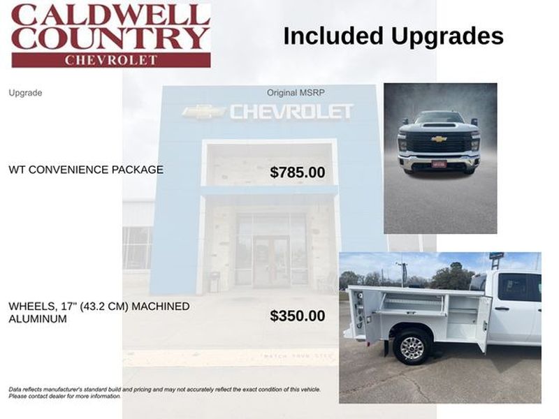 Summit White 2026 Chevrolet Silverado 2500HD Work Truck 4WD 10-Speed Automatic 6.6L V8 10-Speed Automatic, 4WD, Black Cloth. Price includes the following incentives, see dealer for details. : $500 - Chevrolet Bonus Cash. Exp. 03/31/2026 $500 - Chevrolet Consumer Cash Program. Exp. 03/31/2026 Price includes $13,656 in dealer added accessories.